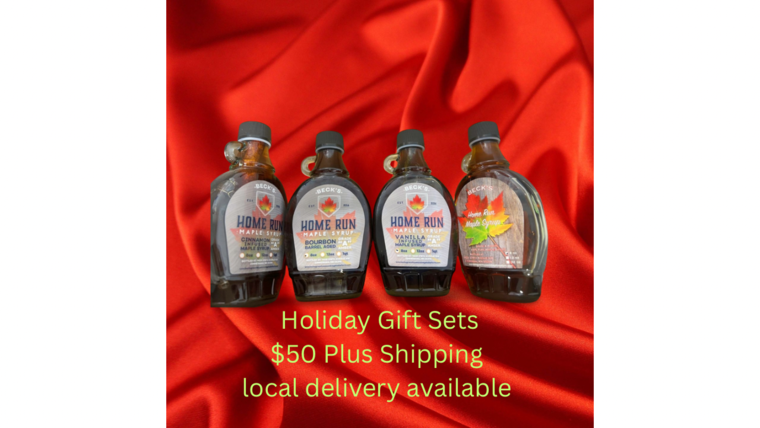 Get an 8oz Pure Maple Syrup, 8oz Bourbon Barrel Aged, 8oz Cinnamon Infused, 8oz Vanilla Infused all for $50 plus shipping which will be added. Local Pickup Available.